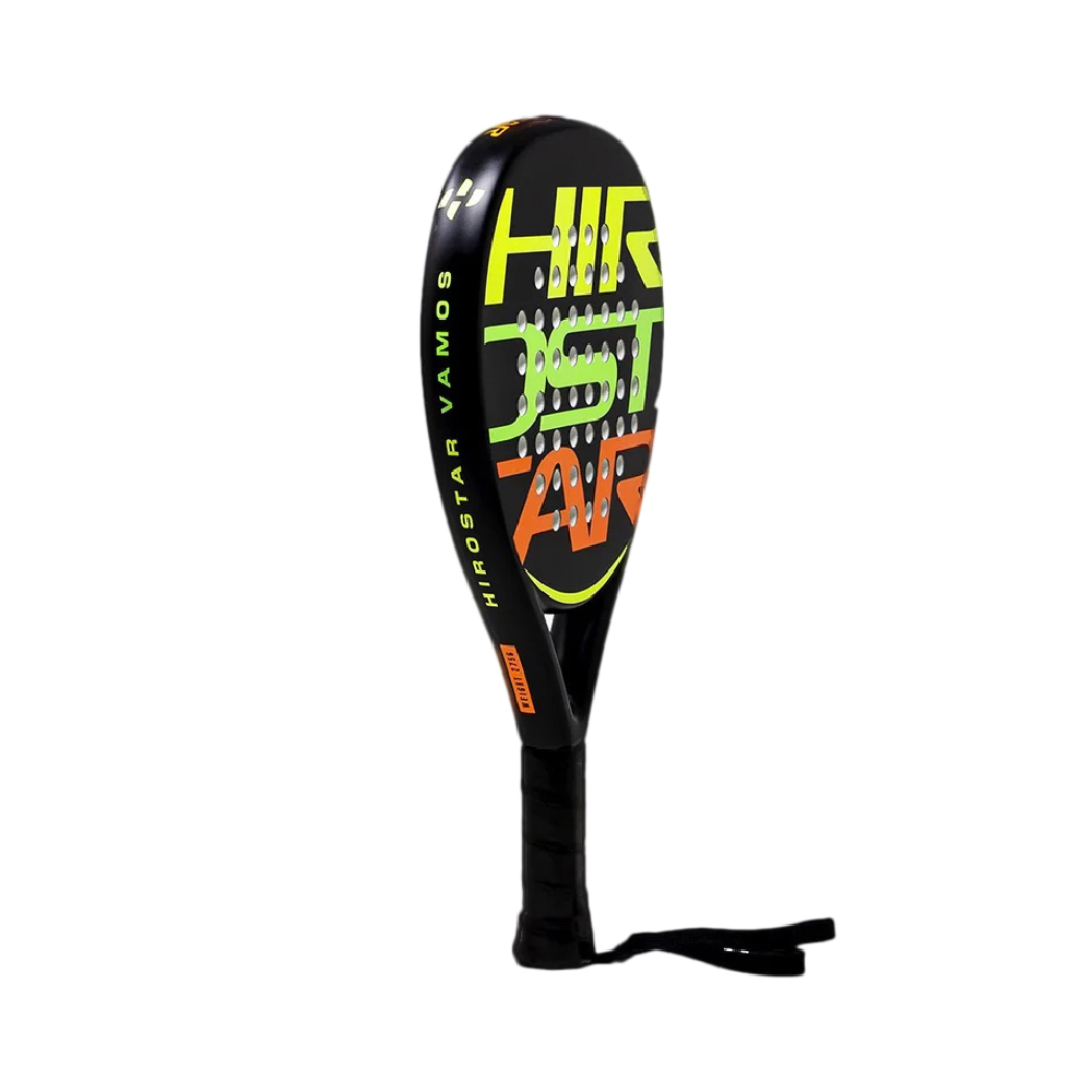 La disposición estratégica de los orificios en la pala está diseñada para que los más pequeños tengan mayor manejabilidad y control, facilitando la agilidad en sus primeros partidos de pádel.